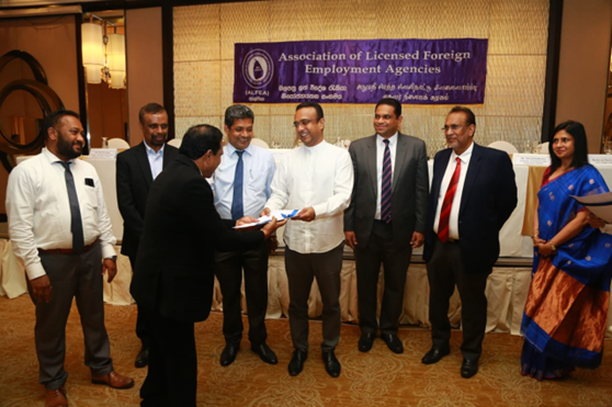 කම්කරු සහ විදේශ රැකියා අමාත්ය මනූෂ නානායක්කාර මහතා විසින් බලපත්ර ලත් Greenway විදේශ රැකියා ආයතනයේ ශාන්ත ජයසුන්දර මහතා වෙත රක්ෂණ ඔප්පුව පිළිගැන්වූ අයුරු. (වම්පස සිට) ALFEA සංගමේ ලේකම් එම්.එෆ්. එම්. අර්ෂාඩ්, ශ්රී ලංකා විදේශසේවා නියුක්ති කාර්යාංශයේ සභාපති මහේන්ද්ර කුමාරසිංහ, ALFEA සංගමේ සභාපති ෆාරූස් මරික්කාර්, පීපල්ස් ඉන්ෂුවරන්ස් සමාගමේ සභාපති ඉසුරු බාලපටබැඳි, ශ්රී ලංකා විදේශ රැකියා නියෝජිත ආයතනයේ සභාපති සුරාජ් දන්දෙනිය සහ පීපල්ස් ඉන්ෂුවරන්ස් සමාගමේ ප්රධාන විධායක නිලධාරිණී ජීවනී කාරියවසම් යන මහත්ම මහත්මීන් ද ඡායාරූපයේ වෙති.