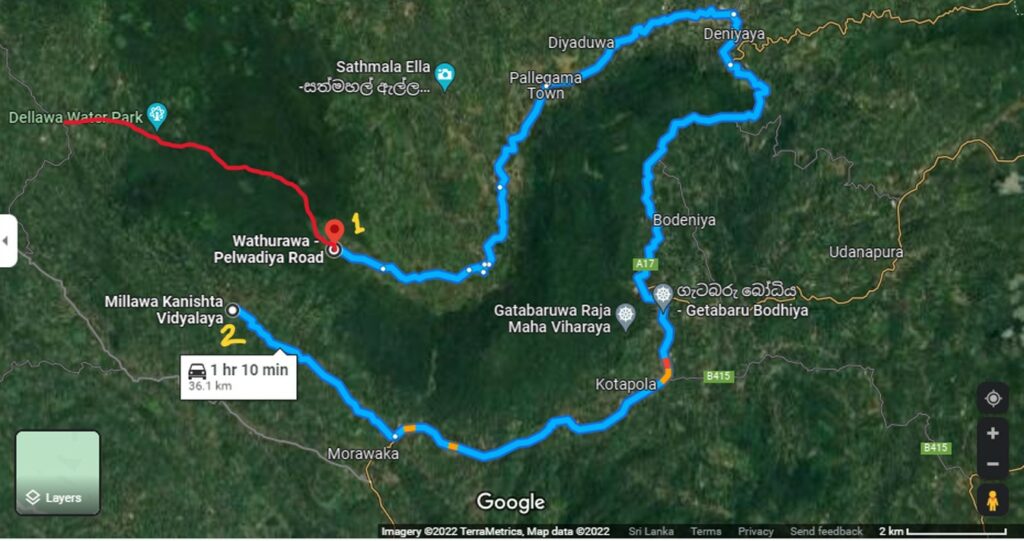 ඡන්ද මධ්යස්ථානය පිහිටුවන මිල්ලව කණිෂ්ඨ විද්යාලයට ගිය අප, එහි සිට දුර සලකුණු කර ගනිමින් අතුරේගෙදර පැල්වාඩිය ගමට ගිය විට එම දුර කිලෝ මීටර 37ක් බව තහවුරු විය.ඡන්දය දැමීමට කිලෝමීටර් 50ක් යෑමට සිදුවන බවට කියන කථාවේ සත්යයක් නොමැති බව එයින් පැහැදිලි විය.