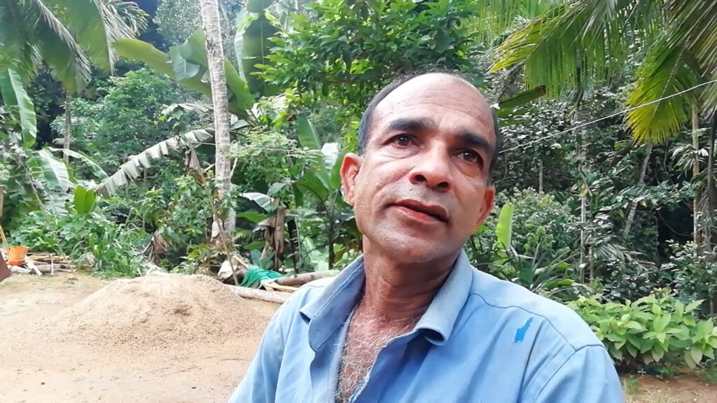 “මාත් කැලේ කපාගෙන තේ වවලා ගෙවල් හදාගෙන පදිංචි වුණා. අපිට දැන් රජයේ ඔප්පු දීලා තියෙනවා. සින්නක්කර ඉඩම් නෑ. අපි ඉල්ලන්නේ මේ ගමට පාරක්.” එසේ කීවේ වයස 55ක් වන එම්.ආර්.ජී.ජයතිලක මහතාය.