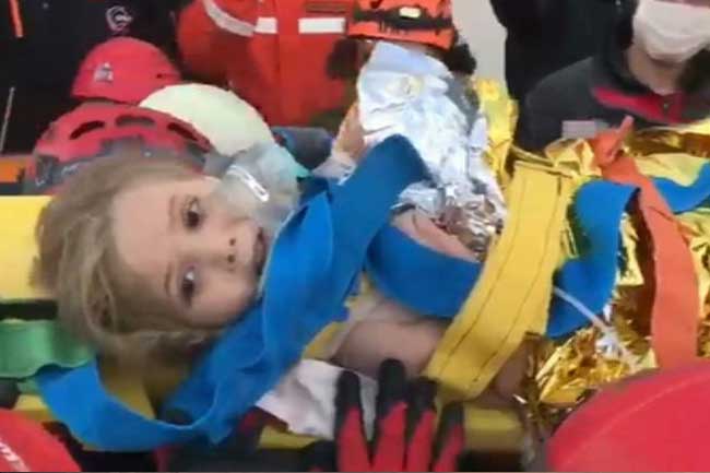 තුර්කි භූමිකම්පාවෙන් කඩා වැටුණු ගොඩනැගිලි සුන්බුන් අතර පැය 91ක කාලයක් සිරවී සිටි වයස අවුරුදු 02ක දැරියක් සහන කණ්ඩායම් විසින් බේරාගෙන ඇත.