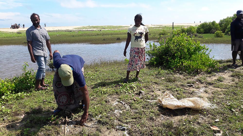 ‘‘යුද්දෙ තිබුණා අපි ගියේ නැහැ, සුනාමි ආවා අපි ගියේ නැහැ, කොරෝන ආවා ඒත් ගියේ නැහැ. මළත් දාල යන්න නොහිතෙන රත්තරං මූදක් මේක. දැන් ඒ මොකුත් නැතිව අපිට මේක දාල යන්න වෙලා තියෙන්නෙ. බරට බරේ අස්වැන්න දීපු ගෑනු මුහුද දැන් වඳ කරලා” ගමේ පැරණිතම සාමාජිකයා 63 හැවිරිදි දොන් ප්රැන්ෂිස් මයිකල් එසේ පවසන්නේ, රළ බිඳෙන මහ මුහුද දෙස හිස් බැල්මක් හළෙමිනි.