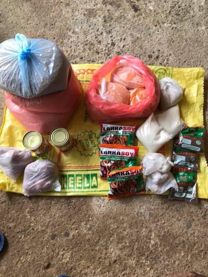 මේ මුලින් තියෙන්නෙ ස්වයං නිරෝධායනයට ලක්වෙන පවුලකට රජයෙන් දෙන රුපියල් 10,000 බඩු මල්ලක්.