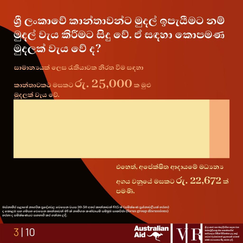රැකියාවක නිරතවන කාන්තාවන්ට අනෙක් කාන්තාවන්ට වඩා සාමාන්ය වියදමක් දැරීමට සිදුවන බව ද මෙම සමීක්ෂණයෙන් තහවුරු වී ඇත.