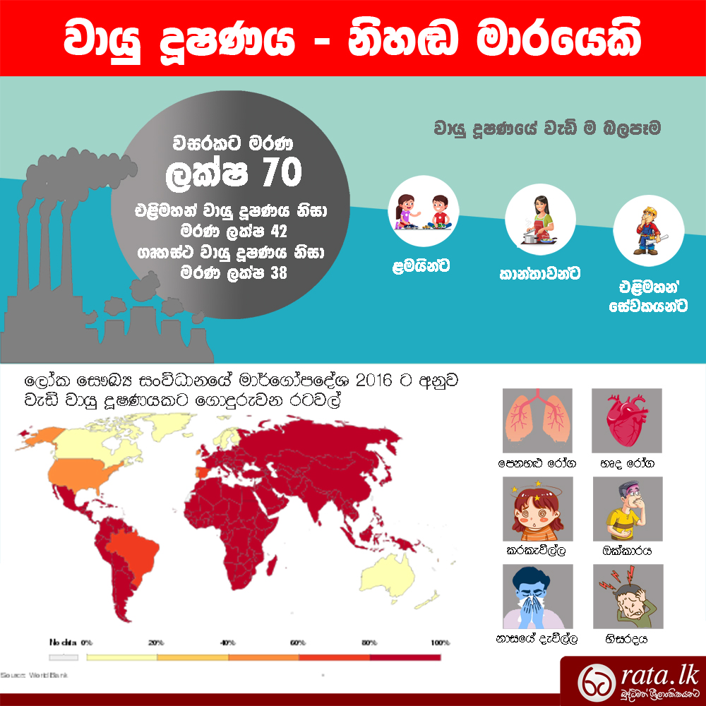 සියලුම වායු දූෂණ ප්රභවයන්ගෙන් සිදුවන මරණ සංඛ්යාව – ලක්ෂ 70