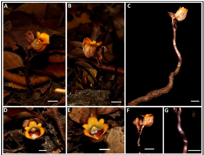 බිම හටගන්නා හෙවත් භෞමික ශාකයක් වන මෙම නව විශේෂය පරපෝෂ විශේෂයකි. සාමාන්ය පරිසරයේ දී පොළොවෙන් ඉහළට එසෙවෙන ශාක පත්ර මෙහි දක්නට නැති අතර පොළව යට භූගත කඳක් හෙවත් රයිසෝමයක් පමණක් ඇත. ශාකය හඳුනාගැනීමට හැකියාව ලැබෙන්නේ කාලයක දී පොළොව මතුපිටට පැමිණෙන මල හෙතුවෙන් පමණි.