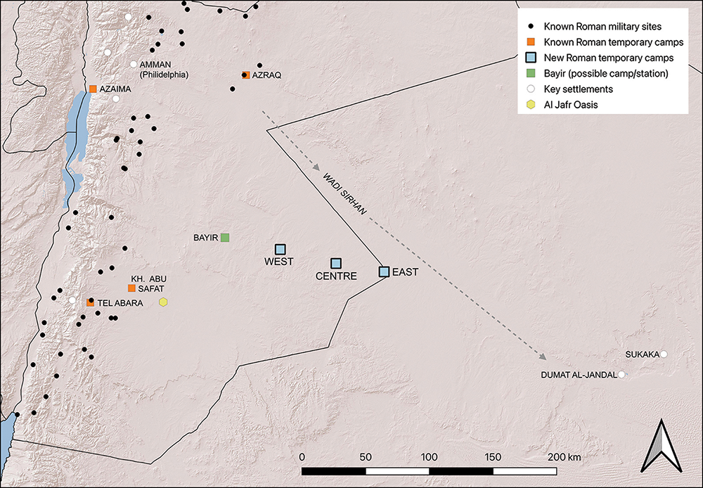 ඔක්ස්ෆර්ඩ් විශ්වවිද්යාලයේ පර්යේෂකයන්ට හමු වී ඇත්තේ පැරණි යුද කඳවුරු කිහිපයකි. ඒවා සෞදි අරාබියේ ඩුමාට් අල් ජනදාල් දෙසට සරල රේඛාවකින් දිවෙන බව පෙනෙන්නට තිබේ. එය පැරණි නබටේන් රාජධානියේ නැගෙනහි ජනාවාසයකි. මේ අසාමාන්ය භූ ලක්ෂණය මුලින්ම හඳුනාගෙන ඇත්තේ සෘජු කෝණාස්රාකාර ලෙසිනි.