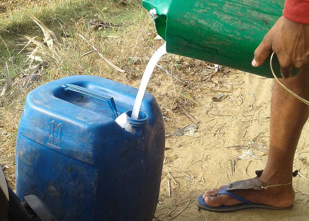 “ඉර එළිය වැටෙන්න කලින් නැගිටින්න ඕනේ. ඊට පස්සේ මදින පෙට්ටියේ පිහි මුවාත තියලා මැද ගන්නවා. රා එකතු කරන භාජන ටික බයිසිකලේ ගැට ගහලා තියෙන්නේ. ගෙදරින් යන්නෙ උදේ පහට. මම කිලෝමීටර් හතරක් දුර යන්න ඕනේ. උදේට මොකුත් කාලා යන්නෙ නෑ, ගස් නගින්න අමාරු නිසා. මම ගස් 11ක රා මදිනවා. ඒ ඔක්කොම සමුපකාර සමිතියට තමයි දෙන්නේ.”