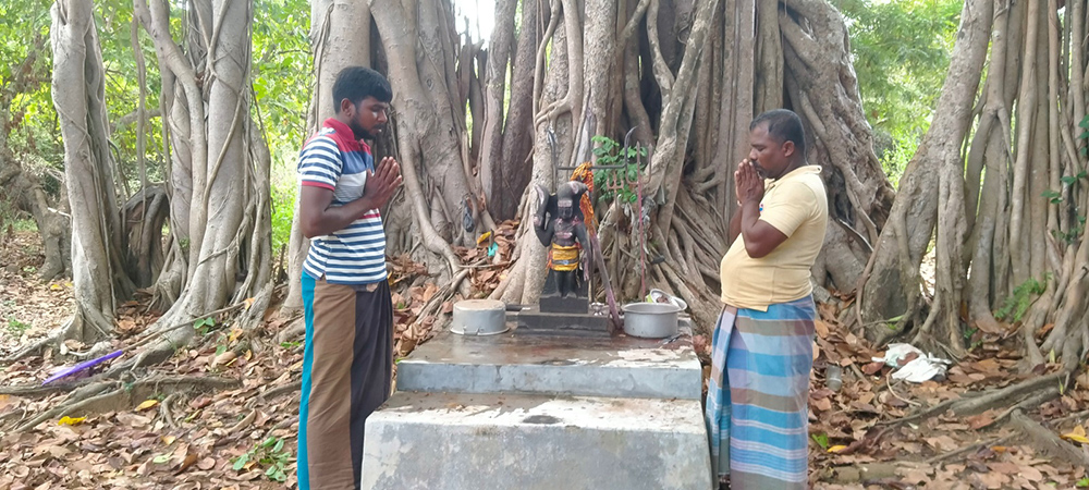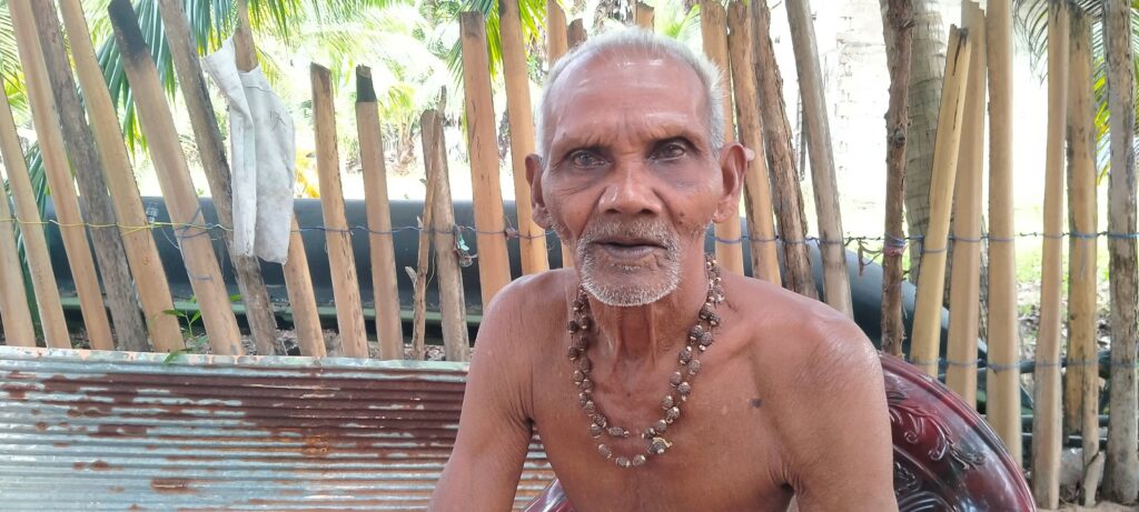 “යුද ගැටුම් වෙලාවේ, එක එක රාජ්ය නොවන සංවිධාන අපේ ළමයි අරන් ගිහින් ක්රිස්තියානි ඉස්කෝලවලට තමා දැම්මේ. මේ නිසා මේ අලුත් පරම්පරාව අපේ පරණ ආගම් නෙවෙයි දැන් අදහන්නේ. එයාලා කතෝලික වෙලා. එයාලා විතරක් නෙවෙයි, ඒ පවුල්වල වැඩිහිටියොත් දැන් අදහන්නේ ඒ ආගම්. ඒ විතරක් නෙවෙයි, අපේ ආදිවාසී ගම්මාන පුරාම අමුතු අමුතු දේවස්ථාන ඉදිවෙලා. අපි ඉස්සර අදහපු දෙවිවරු ගැන, සිරිත් විරිත් ගැන කිසිම දෙයක් මේ අලුත් පරම්පරාව දන්නේ නැහැ. ගොඩක් අය විවිධ වරප්රසාදවලට ආගම වෙනස් කරලා. අපි අපේ ම දෙවිවරු අදහනකොට අලුත් පරම්පරාවේ අය අපිට හිනා වෙනවා. ඉතින් අපි කොහොමද මුහුදු ආදිවාසී කියන අනන්යතාවය රැක ගන්නේ.’’
