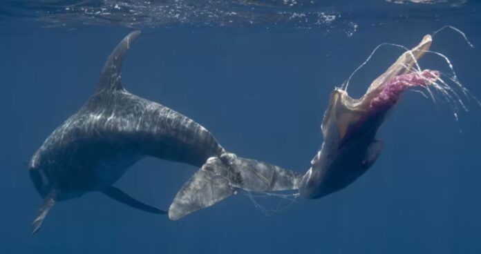 (ඡායාරූපය – ඩොල්ෆින් මසකුගේ සිරුරේ පැටලී ඇති පොලිතීන් සහ ප්ලාස්ටික් කොටසක් iStock/eco2drew)
