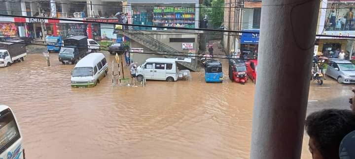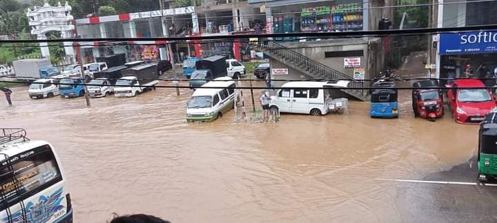 මහ වැසි හේතුවෙන් බණ්ඩාරවෙල නගරය අද (15) ජලයෙන් යට වී තිබිණි.