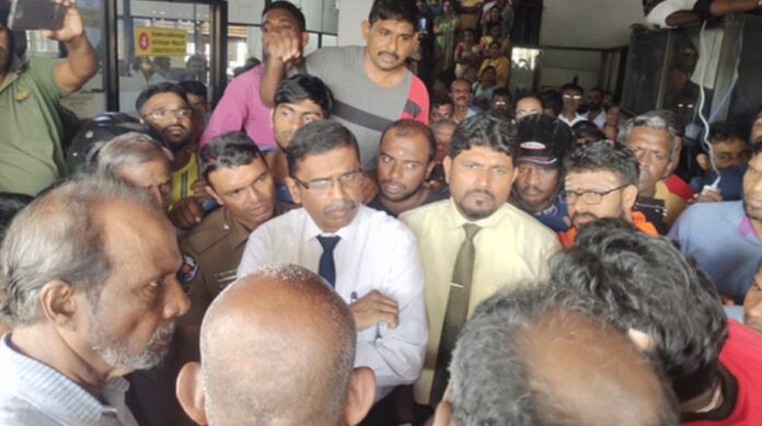 මේ සම්බන්ධයෙන් නිසි පිළිතුරක් ලබාදෙන තුරු දිසාපතිවරයාට එම කාර්යාලයේ පැය තුනකට අධික කාලයක් සිරවී සිටීමට සිදුවිය.