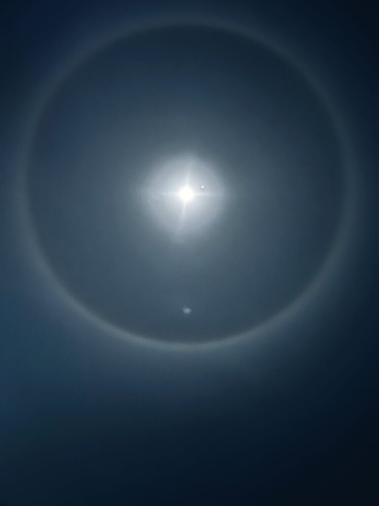 සූර්ය ආලෝකය හඳ මත පතිත වී එම ආලෝකය පෘථිවිය වෙත පැමිණීමේ දී වායුගෝලයේ ඇති ජල වාෂ්ප හරහා ගමන් කිරීමේ දී එම අලෝකය වර්තනය වීම හේතුවෙන් දිවාකාලයේ දී දක්නට ඇති දේදුන්නක් සේ සඳ වටා වළල්ලක් සේ දිස්වෙයි.