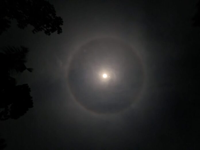 සඳ වටා අද (22) රාත්රියේ, සඳමඬල ඉතාමත් පැහැදිලිව දක්නට ලැබිණි.