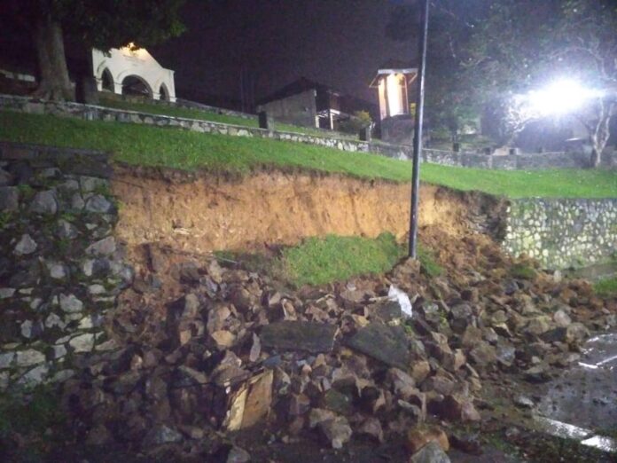 ගාල්ල, මහින්ද විද්යාලයේ දැඩි නායයාමේ තත්වයක් හටගෙන ඇති අතර ඊයේ (05) ඇති වූ ධාරානිපාත වර්ෂාවත් සමඟ පාසලේ තාප්පයක් කඩා වැටී ඇත.