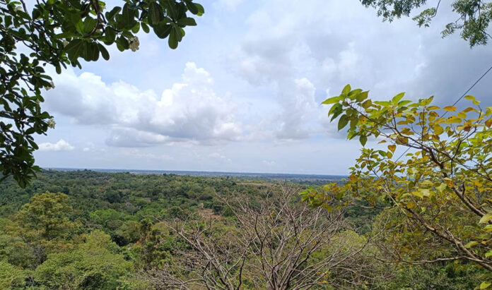 එක් පසෙකින් තොප්පිගල මහා වනාන්තරය දිස්වන අතර තවත් පසෙකින් ඇත්තේ මඩකලපුව දෙසින් දිස්වන මහා සමුදුරේ නීල වර්ණයයි.