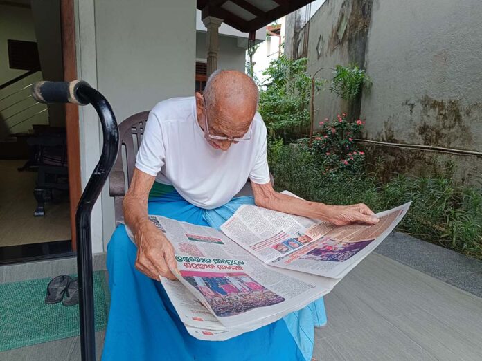 “මම පත්තර කියවන්න පටන් ගත්තේ පත්තරේ ශත 05ට ගන්න කාලේ ඉදලා. දිනපතා පත්තරත්, ඉරිදා පත්තරත් නොවරදවා ම ගත්ත. ඒ හැම පත්තරයක් ම අකුරක් නෑර කියවනවා. රැකියා ඇබෑර්තු පවා කියවලා අපේ ගමේ අයට රැකියා අවස්ථාවන් ගැන පවා කියලා රස්සාවල්වලට යොමු කරලා තියෙනවා. ඒ වගේම හැමදාම පොත් කියෙව්වා. මේ මෑතක් වෙනකන්ම පොත් කියෙව්වා. විශේෂයෙන් ම සාමාන්ය දැනීම පොත් කියවන්න මම කැමතියි. සුභාෂිතය, ප්රත්යශතකය, ලෝවැඩසඟරාව වගේ ඉස්සර කියවපු පොත් නැවත කියවන්න ආසයි. නමුත් දැන් මාස කිහිපයක ඉදලා මගේ ඇස් ටිකක් දුර්වල වුණා. පටලයක් බැඳිලා වගේ පෙනීම අඩු වුණා. ඒ නිසා මම හිතුවාා කාච දැම්මොත් මේ ප්රශ්නය විසඳාගෙන මට තවදුරටත් පොත්පත් කියවන්න පුළුවන් වේවි කියලා.”