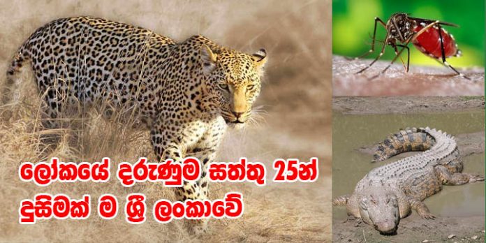 ලෝකයේ භායනකම සතුන් 25 වර්ගීකරණය කළ විට ඉන් විශේෂ 12ක් හෙවත් දුසිමක් ම ශ්රී ලංකාවේ ගොඩබිම හා අවට මුහුදේ දැකිය හැකිවේ. මෙහි ප්රථම ස්ථාන තුනට පිළිවෙලින් මදුරුවා, අලියා හා කිඹුලා පත්ව සිටින අතර 25 වැනි ස්ථානයට පත්ව ඇත්තේ ශ්රී ලංකාවේ යාපනය අර්ධද්විපයෙන් 2015 දී වාර්තා වූ රතු ගෝණුස්සා නම් සත්ත්ව විශේෂයයි.