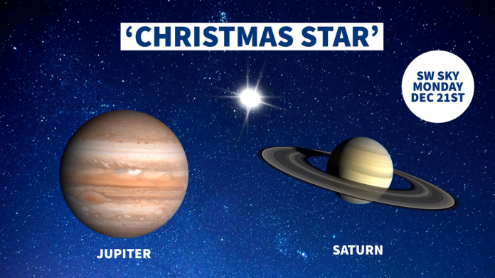 එදිනට එම ග්රහලෝක දෙක එක්ව අසන්න වශයෙන් විශාල දිගටි තනි ග්රහලෝකයක් ලෙස දිස්විය හැකි බව ද ඒ මහතා සඳහන් කරයි. මෙම සංසිද්ධිය බොහෝ දෙනකු හඳුන්වන්නේ නත්තල් තාරකාව යනුවෙනි. සෑම වසර 20කට වරක් මේ ආකාරයෙන් බ්රහස්පතී සහ සෙනසුරු ග්රහයන් දෙක එකම රේඛාවක ආසන්නයෙන් පෘථිවියට දිස්වන අතර වසර 800කට පෙර දෙසැම්බර් මාසයේ මෙලෙස ග්රහයන් දිස්ව ඇතැයි කියති. එය හඳුන්වා ඇත්තේ නත්තල් තාරකාව යනුවෙනි. මෙවර ද මේ සංසිද්ධිය දෙසැම්බර් මාසයේ දී දිසිවීම විශේෂත්වයකි. මේ ග්රහලෝක දෙක අතර දුර කිලෝ මීටර මිලියන 400ක් වෙයි.