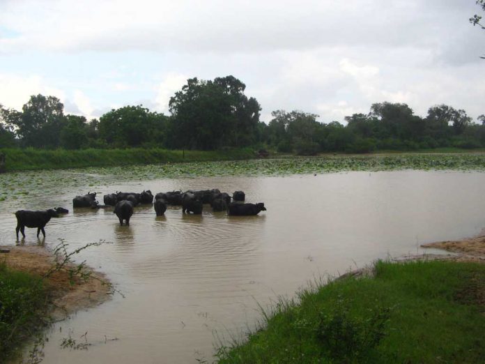 අපි වැවක් අසලට පැමිණියමු. තරමක කුඩා වැවක් වන එහි ජලය පිරී තිබේ. ඒ අසල විශාල සියඹලා ගසකි. යතුරු පැදිය නවතන්නට යැයි කී ගම්බාර මහතා ඉන් බැසගත්තේය.